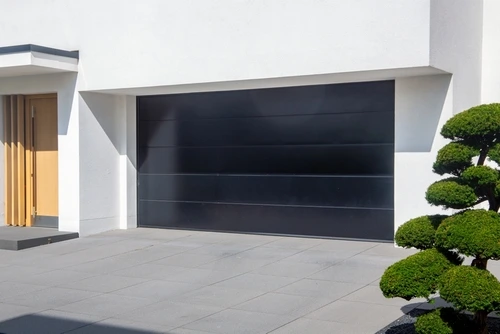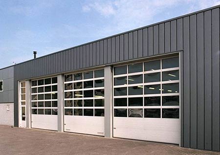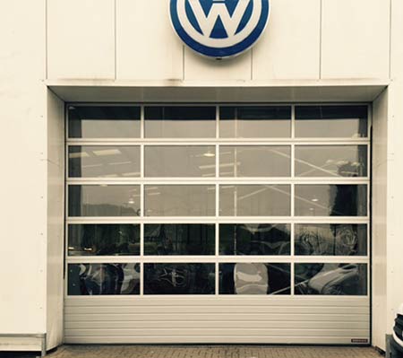 Clever engineering means that when the sectional shutter is raised and folded, the internal door moves seamlessly with it.